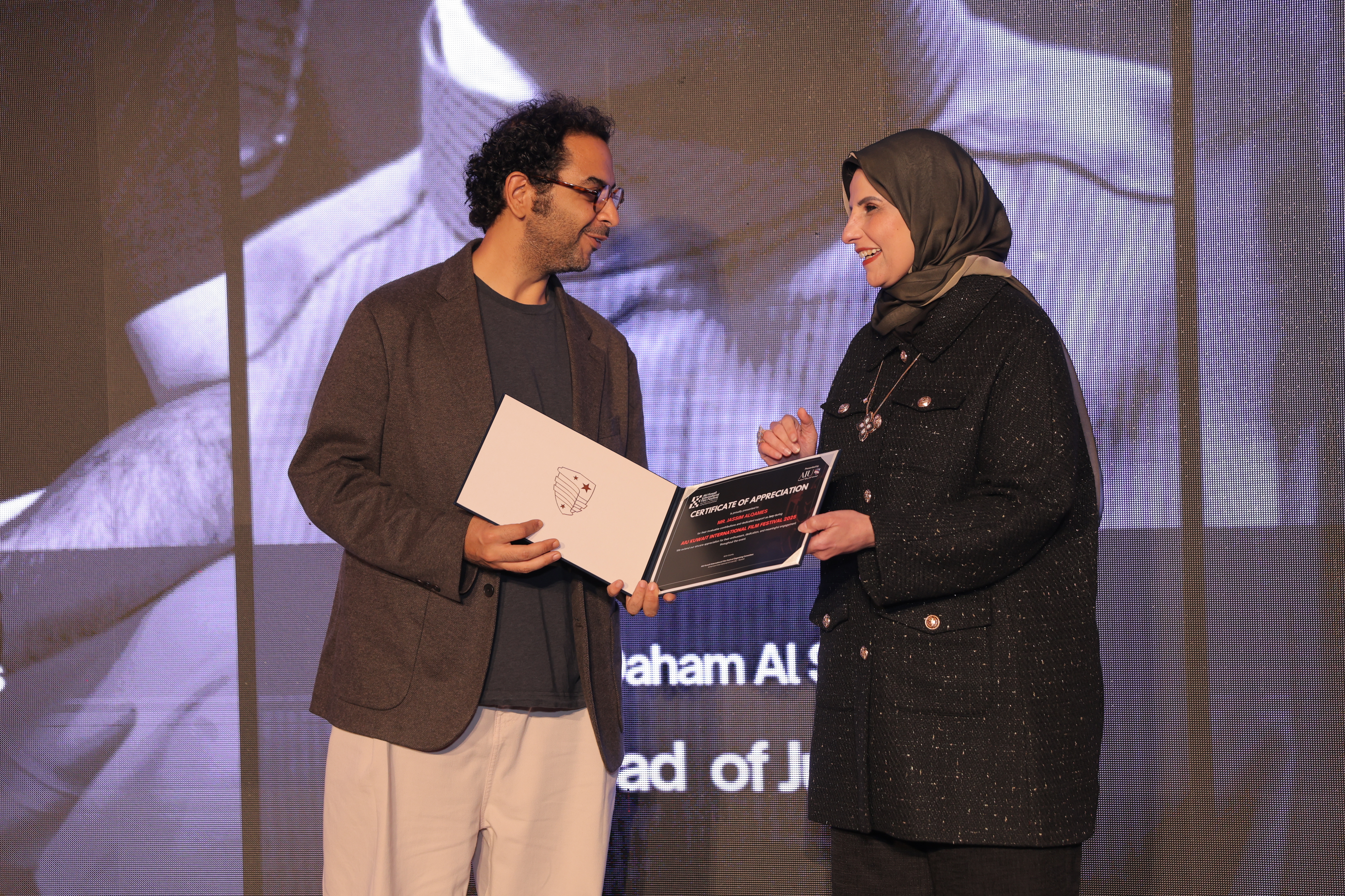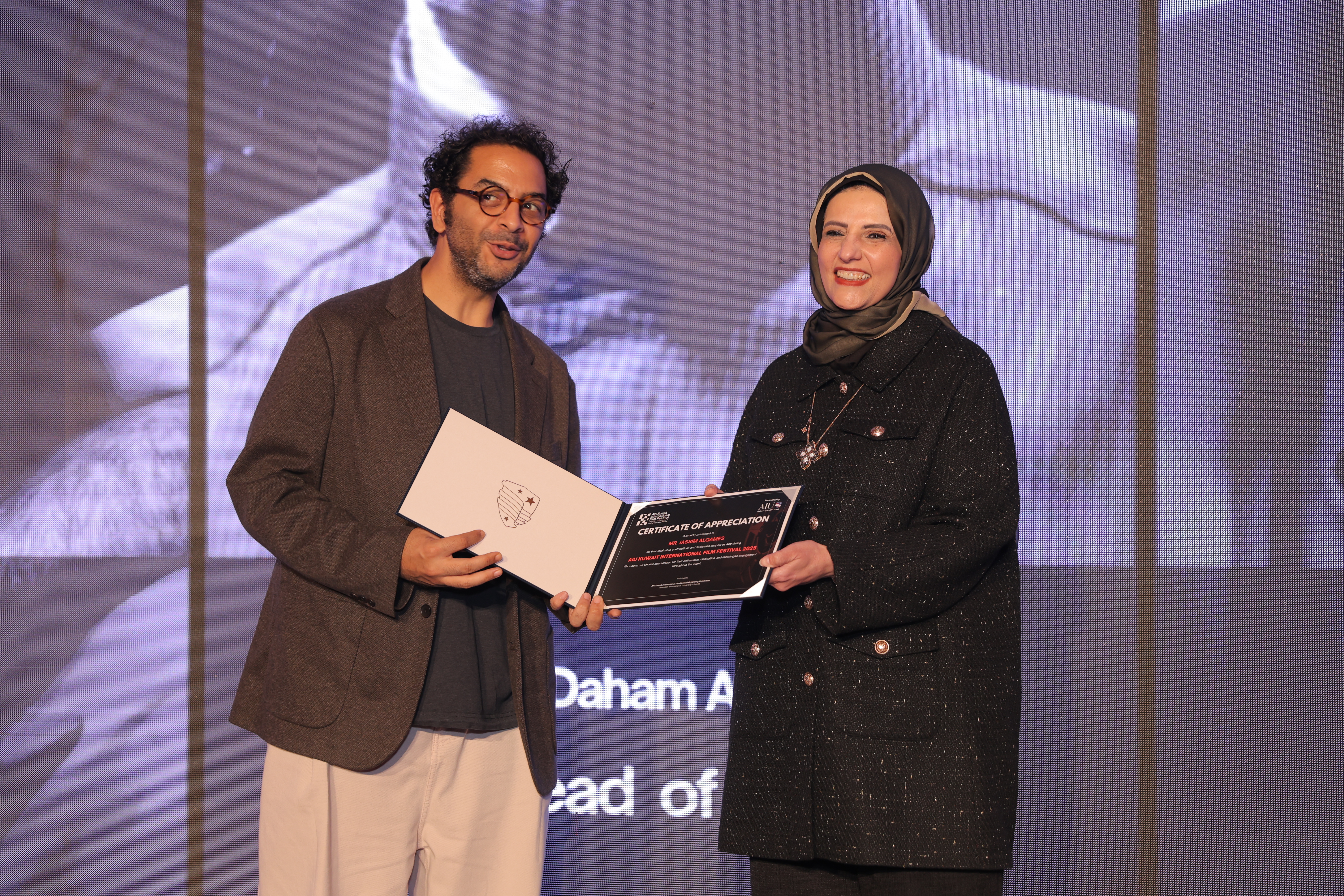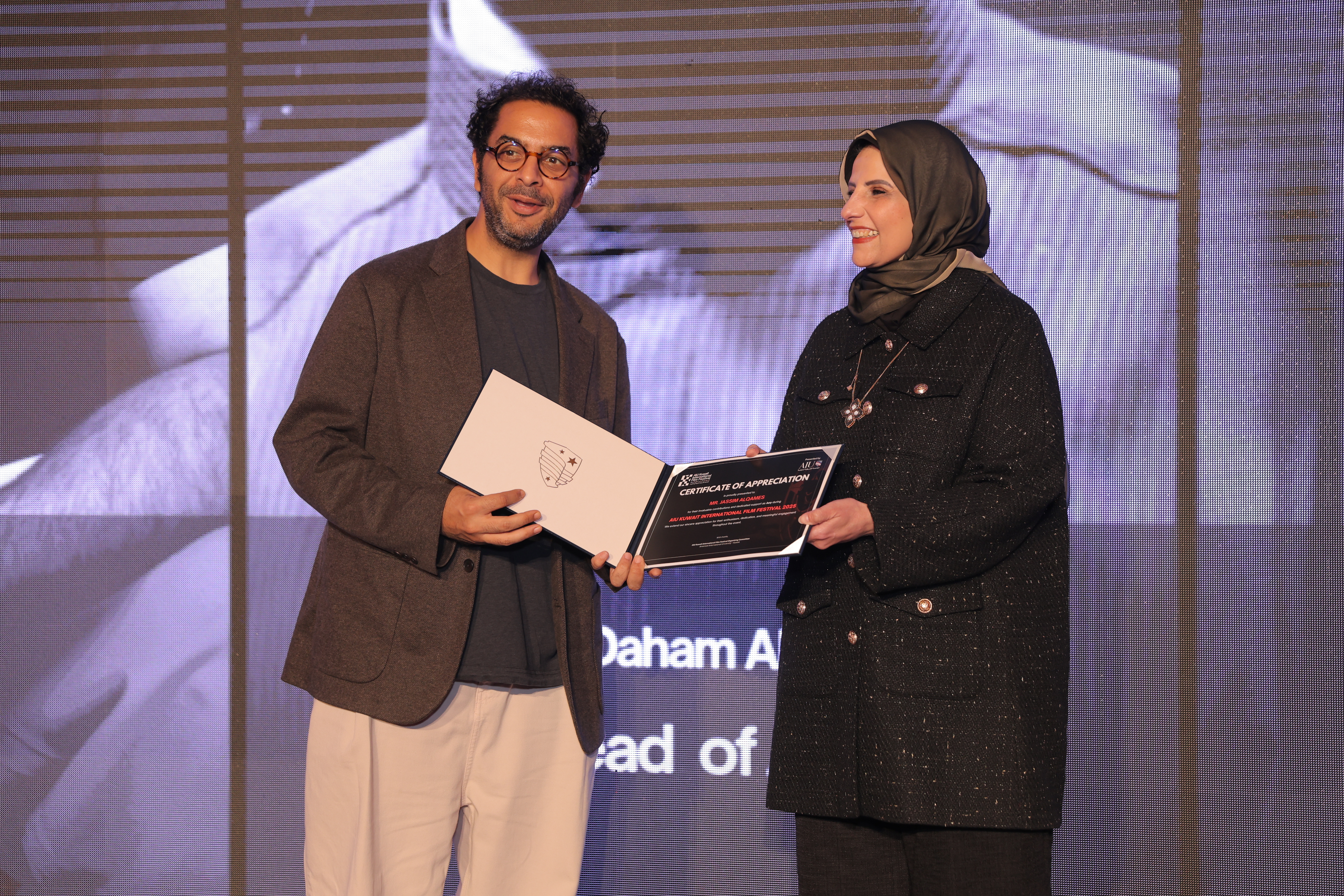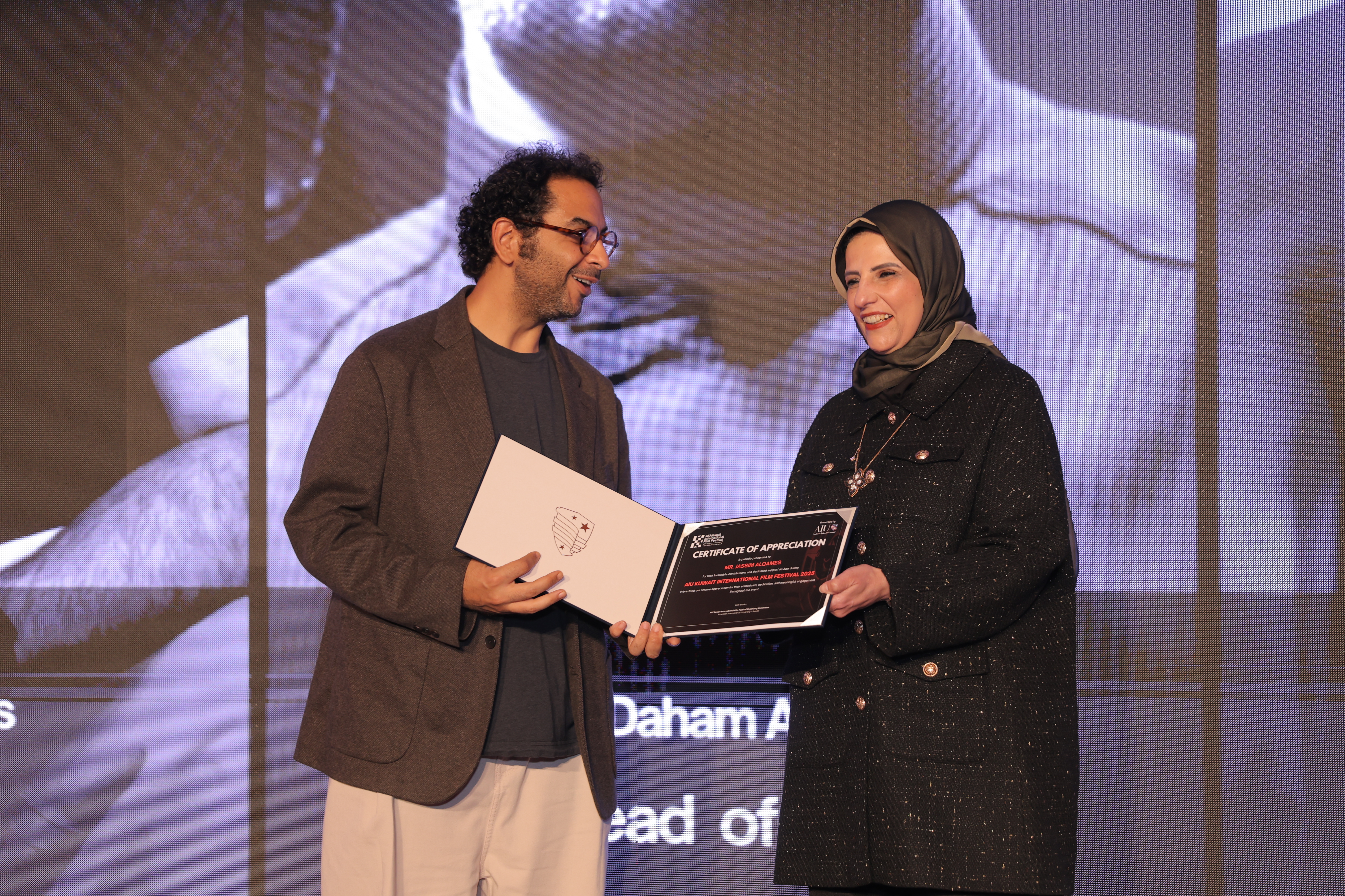 AIU Kuwait International Film Festival, Day 06 Images, Award Ceremony, Kuwait Film Industry, GCC Films, AIU Event, AIU Campus, ertificate of Appreciation, Jasim Al Qames, Mrs. Areej Al-Ghanim