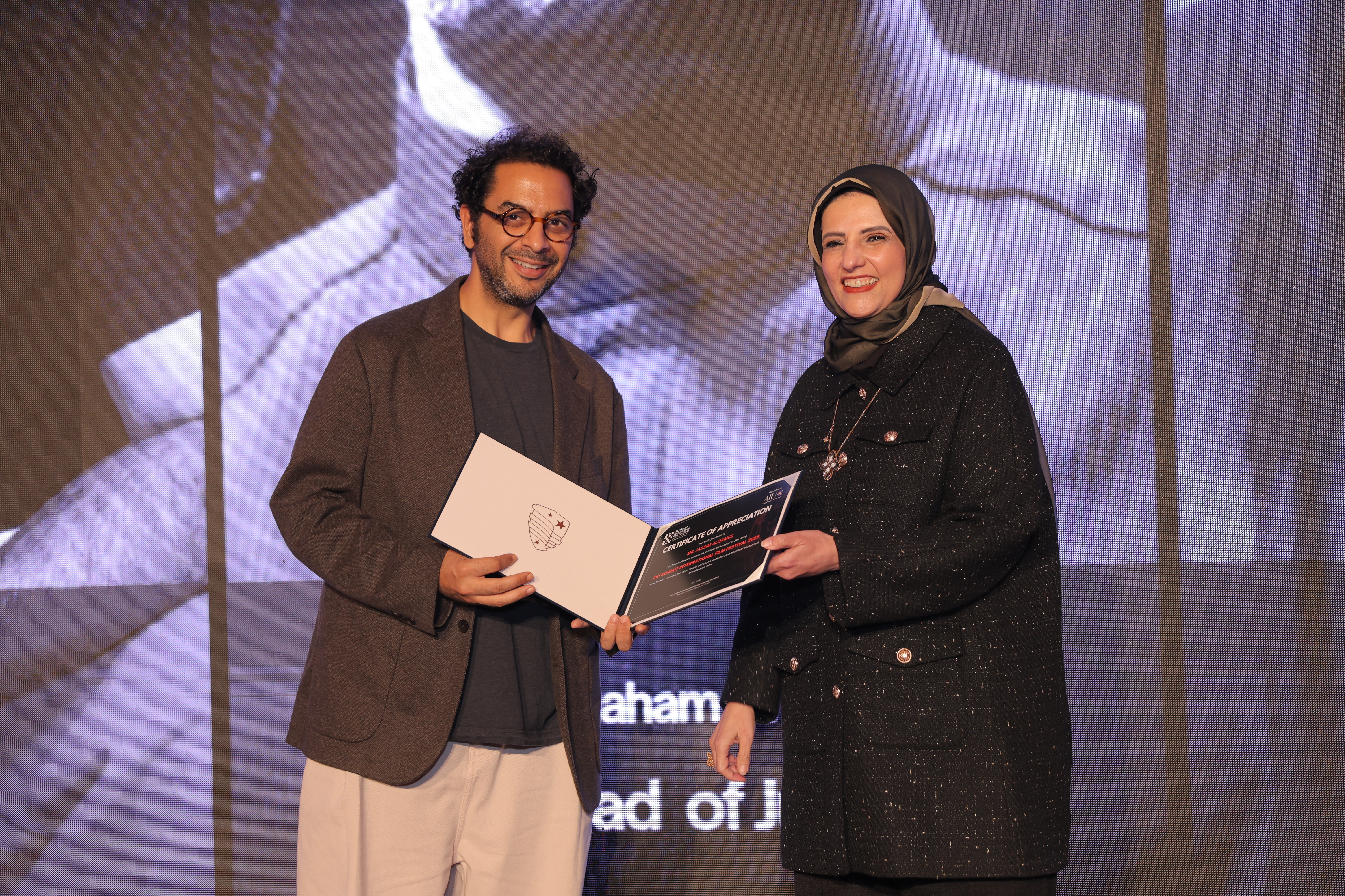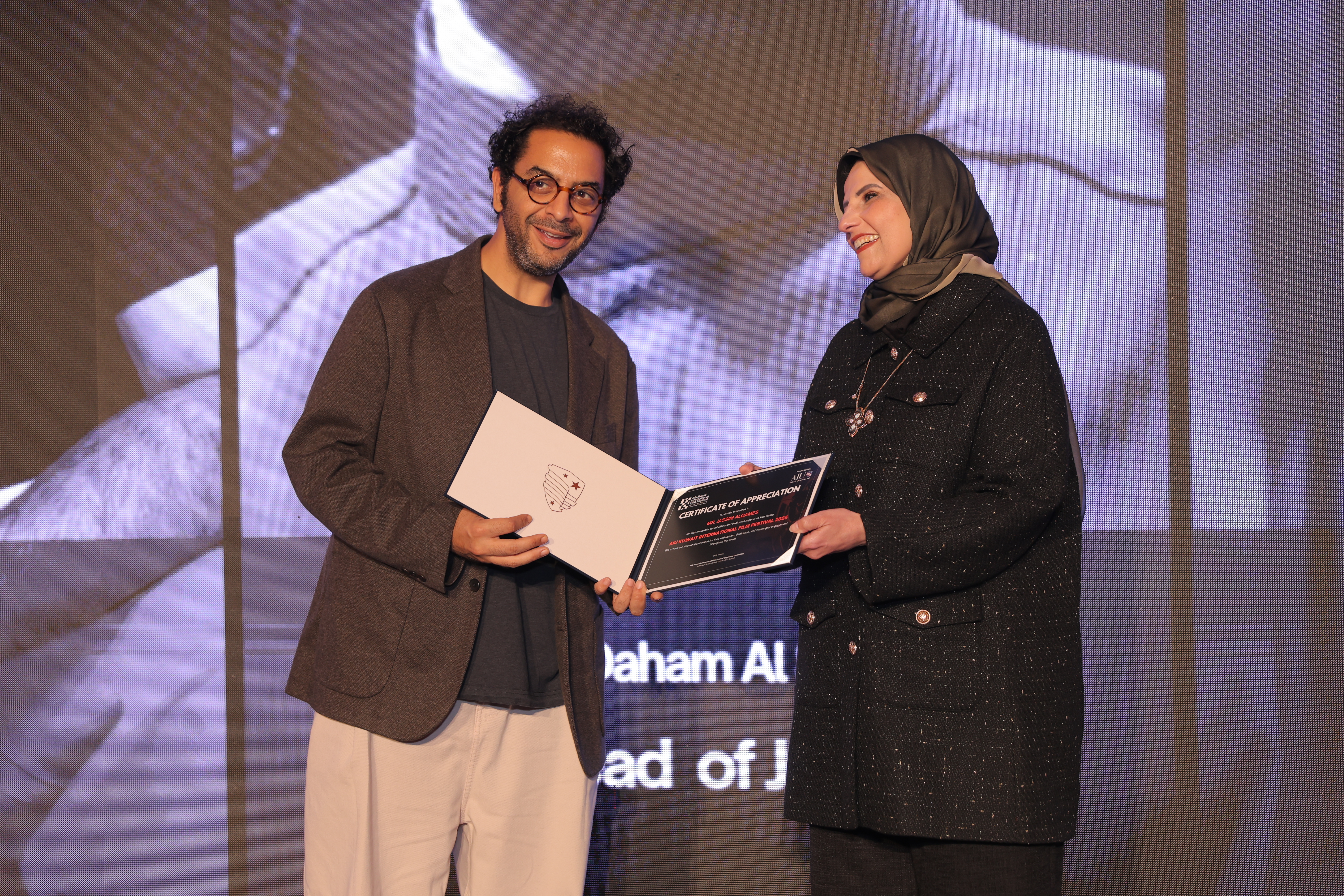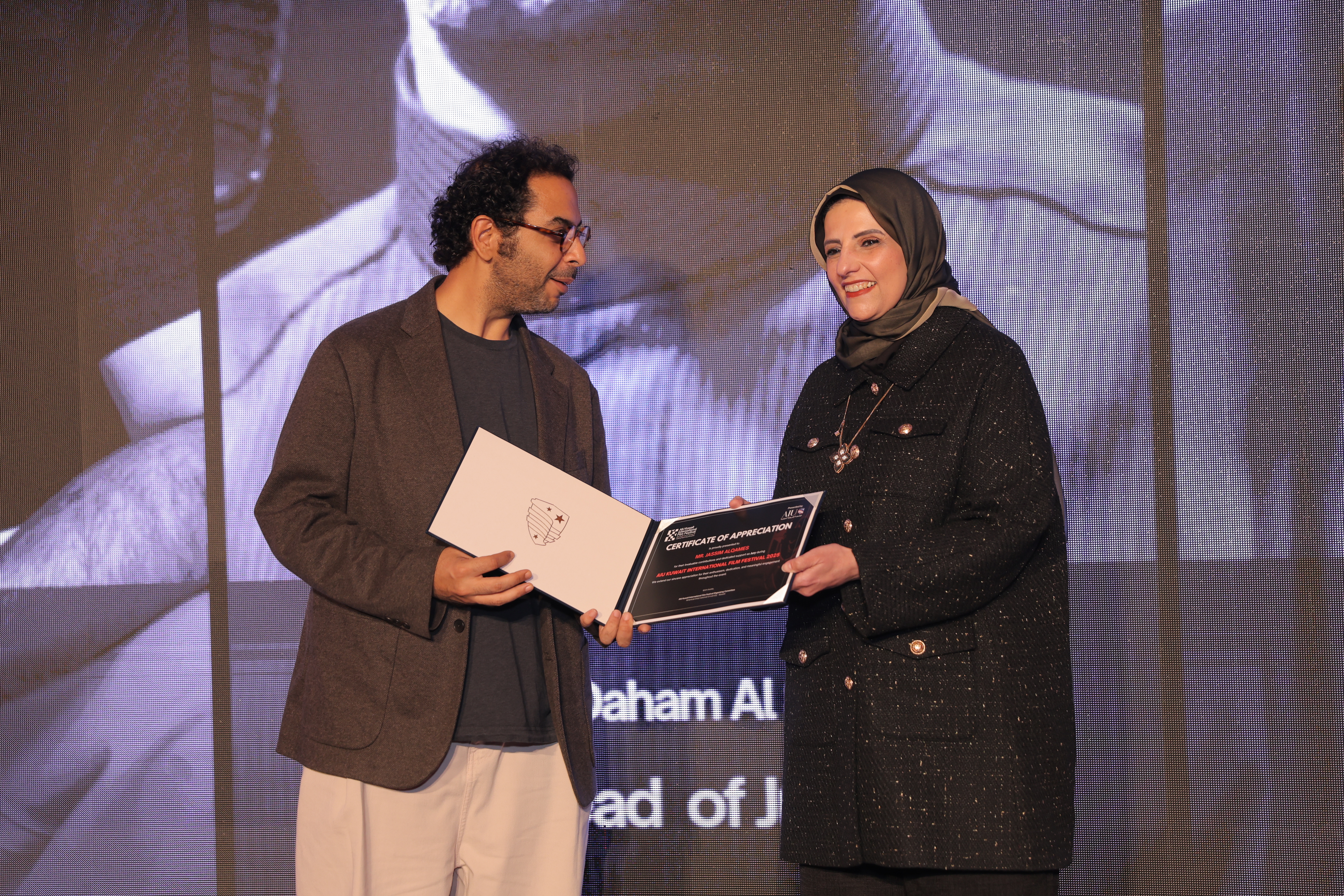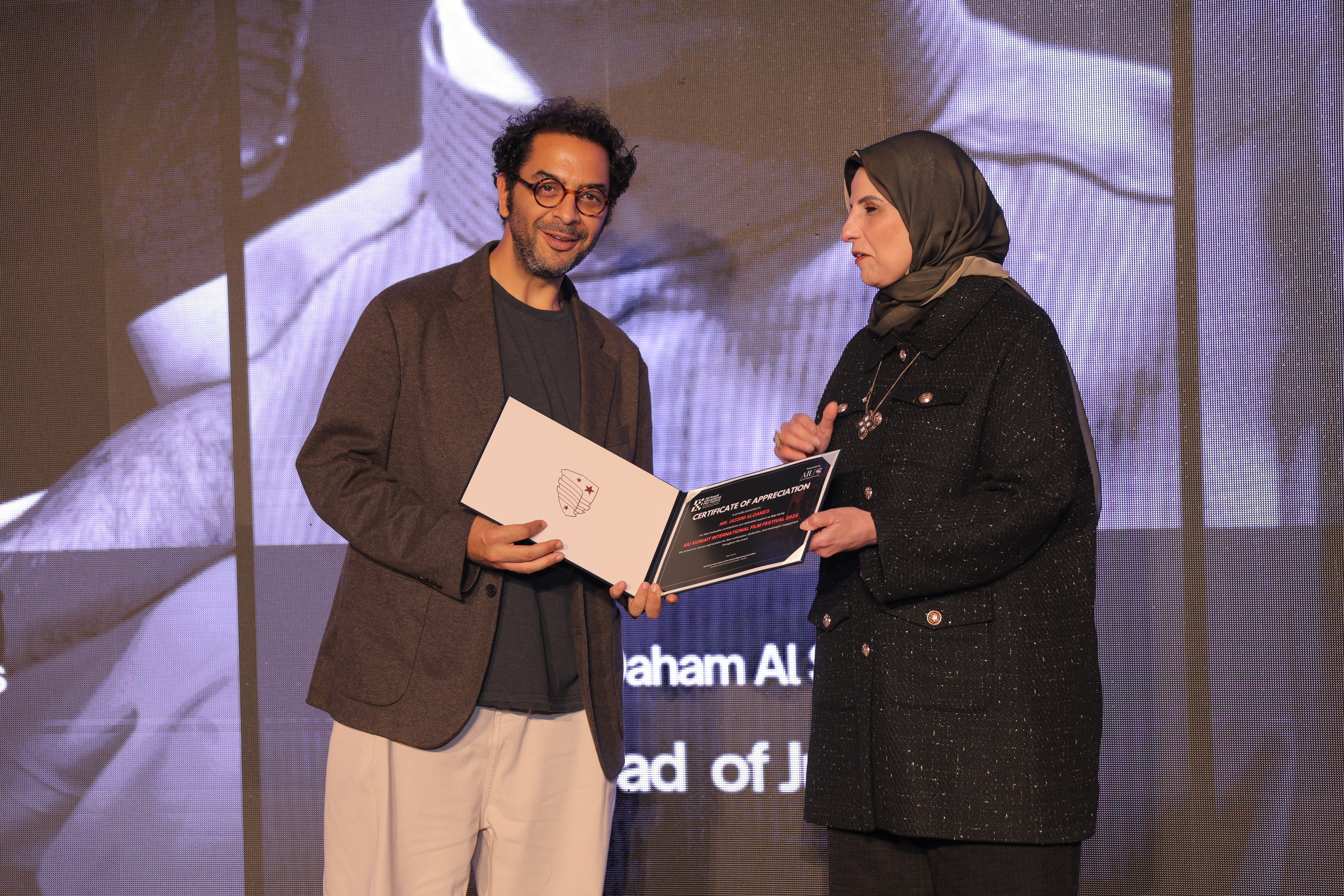 AIU Kuwait International Film Festival, Day 06 Images, Award Ceremony, Kuwait Film Industry, GCC Films, AIU Event, AIU Campus, ertificate of Appreciation, Jasim Al Qames, Mrs. Areej Al-Ghanim