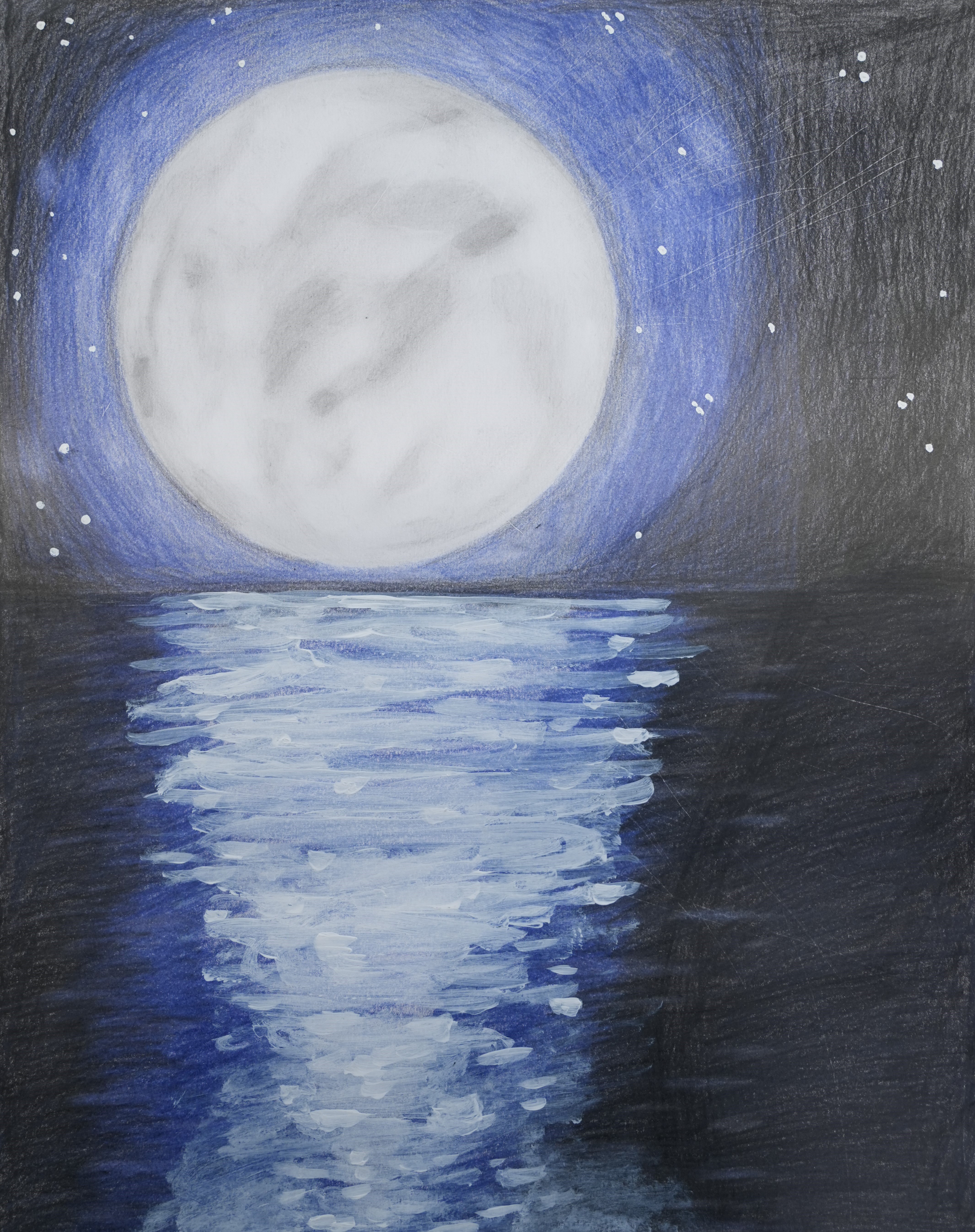 This painting was created as a part of the AIU Divine Creation competition 2025, by Shadan Al Fahed from SCAD. The artwork is entitled "The Moon and the Tide".